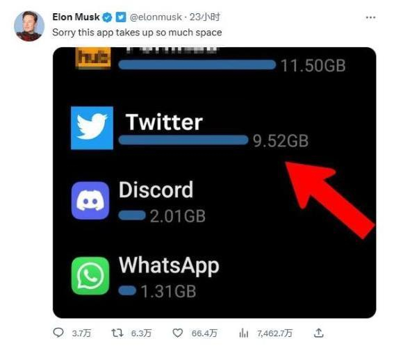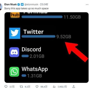 马斯克为推特占太多手机内存致歉!共占用9GB,网友:看着我的内存第一笑而不语