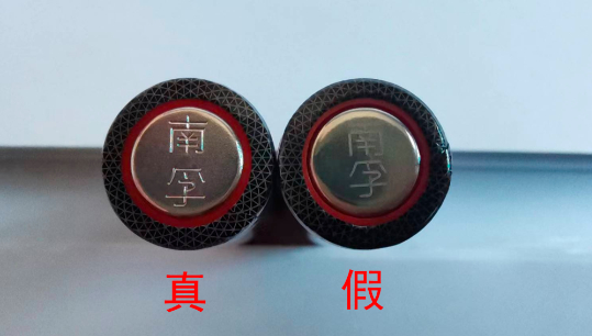 看负极。真“南孚”电池比假“南孚”电池做工精细得多,真“南孚”电池刻字深且明,假“南孚”电池刻字浅而淡,关键性差别:真“南孚”电池的“南”字和“孚”字之间有明显间距,假“南孚”电池没有。