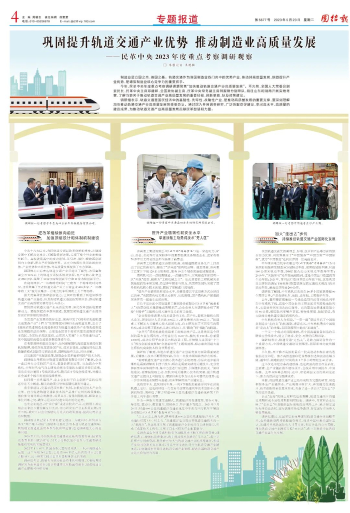 今年,民革中央年度重点考察调研课题聚焦“加快推动轨道交通产业高质量发展”。不久前,全国人大常委会副委员长、民革中央主席郑建邦,全国政协副主席、民革中央常务副主席何报翔分别带队,前往山东和湖南开展实地考察,了解当地关于推动轨道交通产业高质量发展的重要经验、创新举措,以及对策建议。