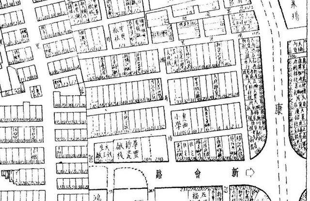 鸿寿坊所在地(新会路、西康路转角处)历史地图,来自20世纪40年代出版的《上海行号图录》。
