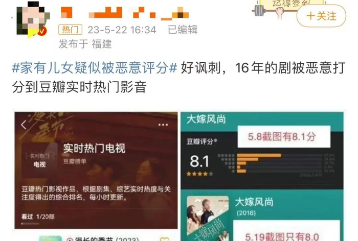 近日,家庭情景喜剧《家有儿女》疑似被“恶意”评分一事登上热搜。
