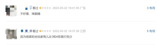 据工人日报消息,不少网友对作品打出“一星”,并贬损、攻击主演之一杨紫。