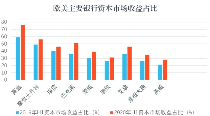 三是从收入结构看,可以发现欧洲大型银行资本市场收益占比总体高于美国传统大型银行(花旗、摩根大通、美银),部分已经接近于美国传统投资银行(高盛、摩根士丹利)。