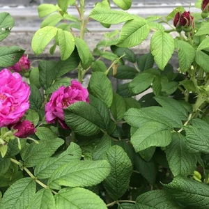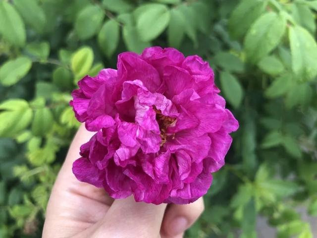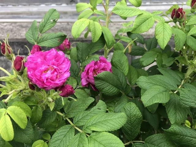 重瓣玫瑰,顾名思义是繁杂的多瓣玫瑰,花朵饱满。紫红色的花朵,点缀在成片的绿丛中,煞是夺目。凑近细嗅,淡淡的香气扑鼻而来,让人心旷神怡。