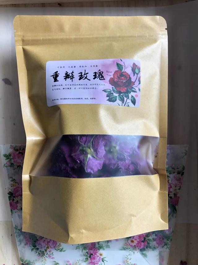 从烘干机里出来的玫瑰花,基本保持了原先的颜色和模样,花香犹存。干花可用来泡茶,随着沸水注入,花瓣重新舒展开来,伴随着淡淡花香,喝一口,清甜回甘。