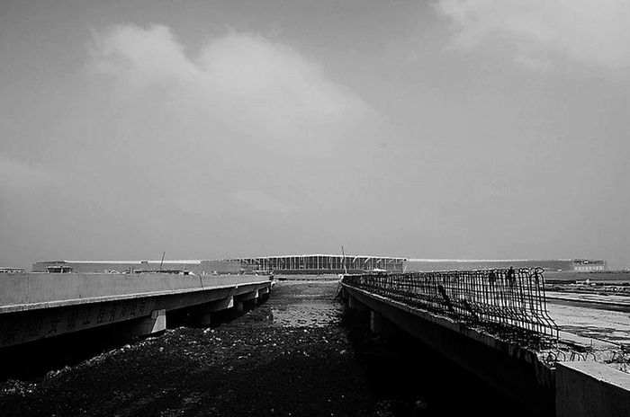 2010年10月,新桥机场建设施工现场,航站楼已初具雏形。