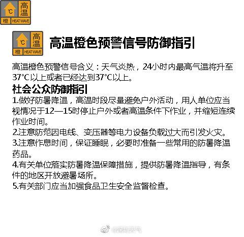 天气炎热加剧,重点要做好防晒防暑降温措施,白天尽量减少外出,适当吃些清热消暑食品,同时要防范局地雷雨。