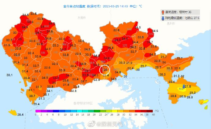 昨天早上,深圳发布高温黄色预警,截至昨天(5月29日)16时35分,深圳全市共有172个站记录到33℃以上,其中有60个站35℃以上。最高气温36.8℃(罗湖区东门站),深圳牌香辣味“炸鸡腿”上线!