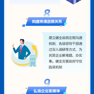 第五、构建亲清政商关系。建立健全政商定期沟通机制,各级领导干部通过深入调研等方式,为民营企业解难题、办实事。健全完善政府守信践诺机制。