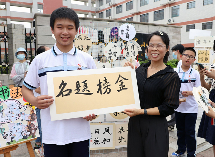 同安区阳翟小学校长吕志评介绍:“这项活动弘扬了传统文化,学生在充分展示书法专业特长的同时,又为小朋友送上祝福,很接地气。”
