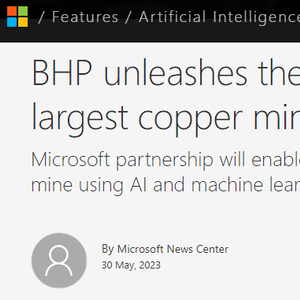微软高管写道,“很高兴能与必和必拓合作开展这一变革性项目,这将成为公司帮助客户实现投资价值最大化的新案例,客户可以借此释放出运营效率,并逐步改变其商业模式。”