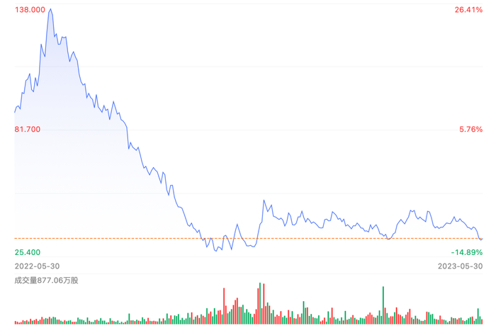 伴随着持续低迷的市场表现,小鹏汽车股价也早已腰斩。以近一年为例,小鹏汽车在2022年6月27日股价达到巅峰,为138.00港元,而截至今日最新收盘,小鹏汽车股价已经跌至31.35港元,较最高点已经跌去78%。