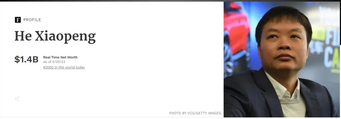 相关数据显示,2020年何小鹏以12亿美元财富位列《2020福布斯全球亿万富豪榜》第1730位,2021年以55亿美元财富位列《2021福布斯全球富豪榜》第502位,2022年以40亿美元财富位列《2022年福布斯全球富豪榜》第728位,而如今其身价已经跌至14亿美元。