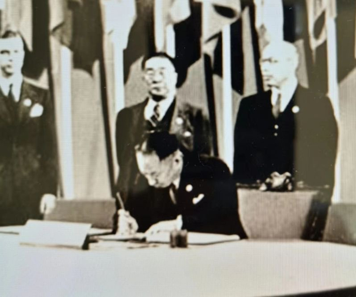 1945年6月底,在联合国宪章签字仪式上,首先由五大发起国签字,中国按英文字母排在首位,首席代表顾维钧用毛笔,第一个在联合国宪章上签下自己的中文名字,这是历史性的一刻。