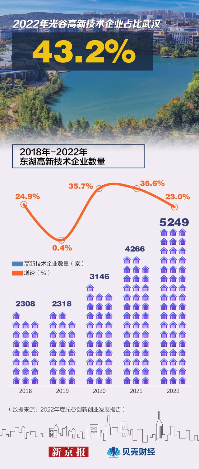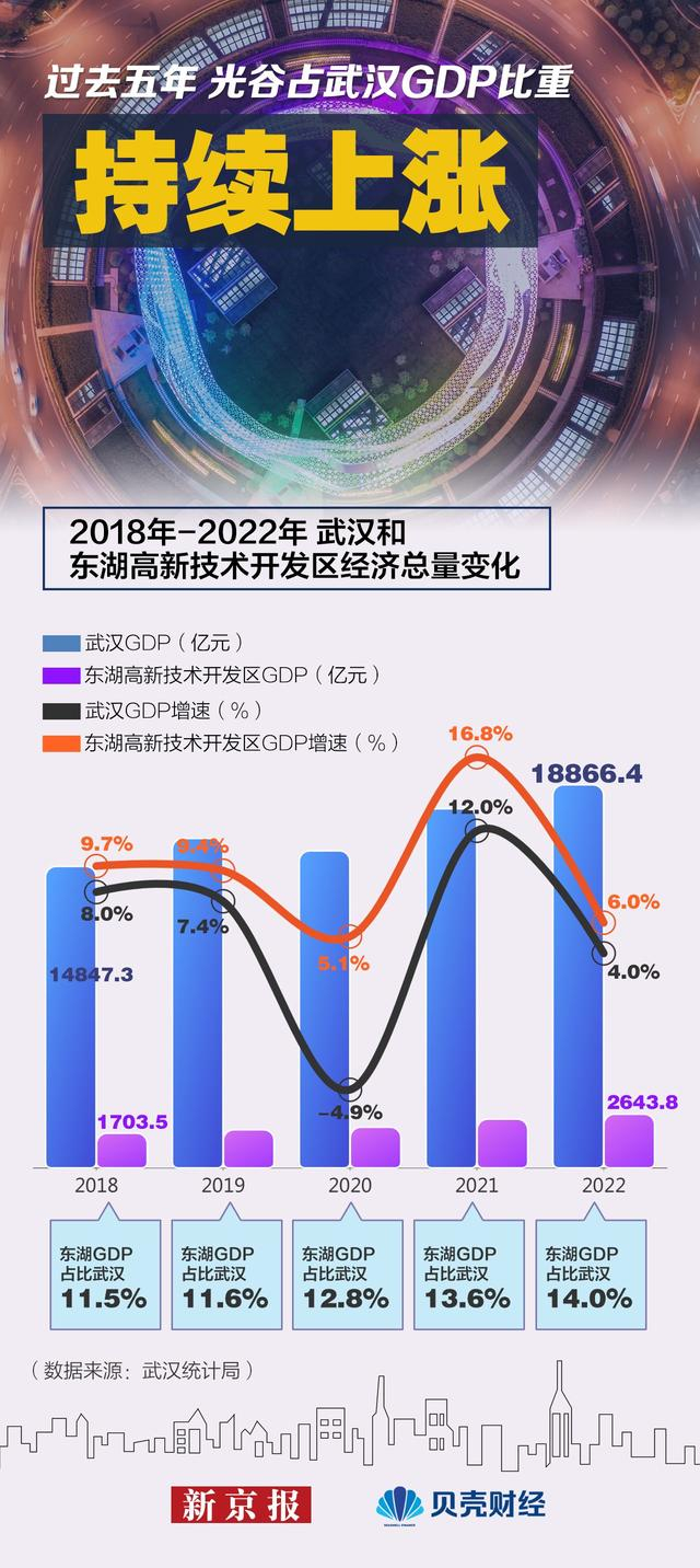 过去十年,光谷“四上”研发投入年均增长20%以上,2021年研发经费投入强度与以色列相当。2022年,光谷再次加大研发投入力度,研发经费投入强度达到9.5%,是全国平均水平的3.8倍。据东湖高新区2023年工作报告,2022年光谷高新技术产业增加值同比增长14.15%,东湖科学城建设已初见成效。