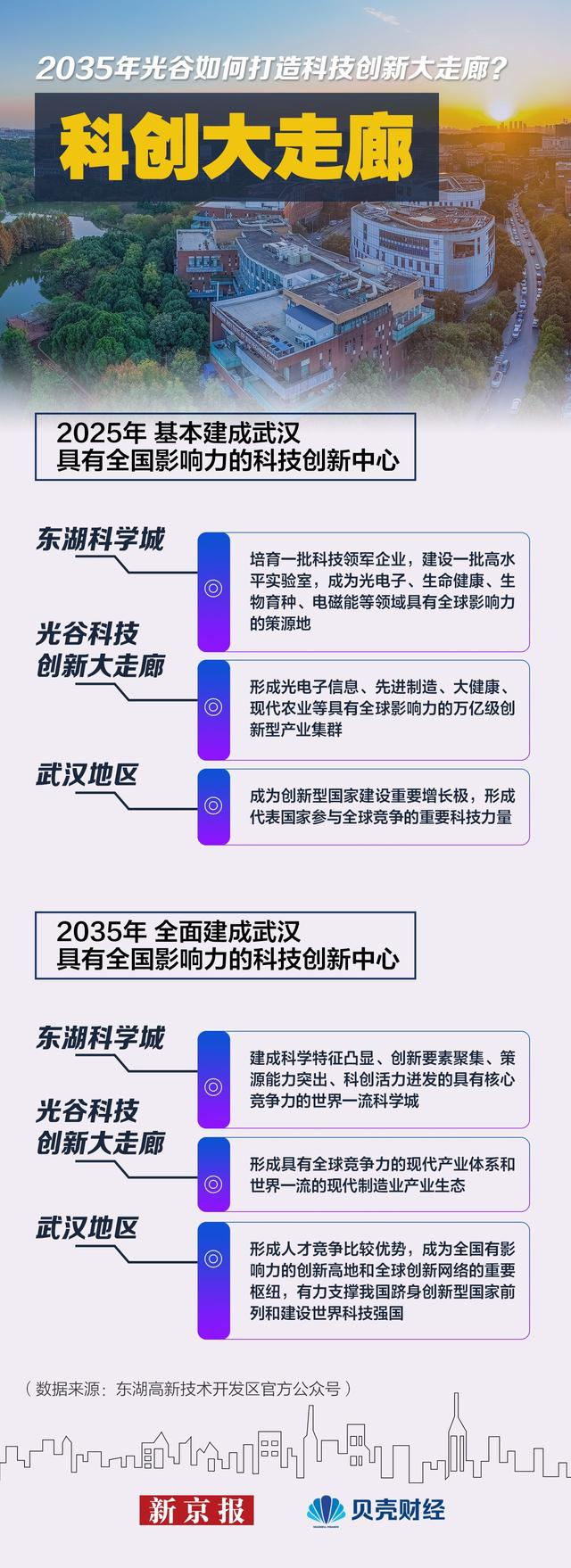 2022年,经报国务院审核同意,科技部、发改委联合批复《武汉具有全国影响力的科技创新中心建设总体规划》,武汉成为继北京、上海、粤港澳国际科创中心和成渝区域科创中心之后,上升至国家层面的战略部署。《规划》提出,以东湖科学城、光谷科技创新大走廊为主阵地,并给出时间表和路线图。