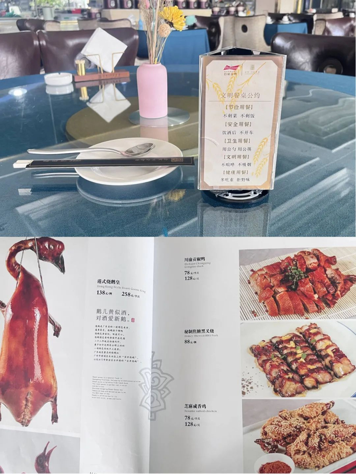 1.已在醒目位置张贴反食品浪费标识,每个餐桌均设有合理点餐、杜绝浪费提醒;