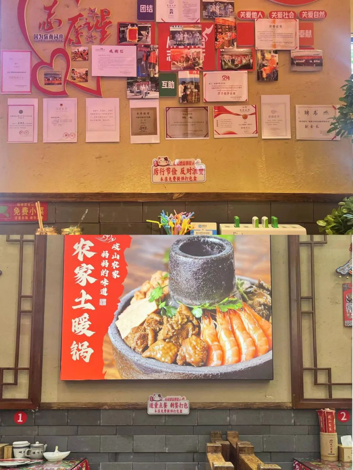 上榜理由:店内醒目处张贴有宣传标语;反对浪费、剩菜免费打包等宣传到位,宣传氛围浓厚。