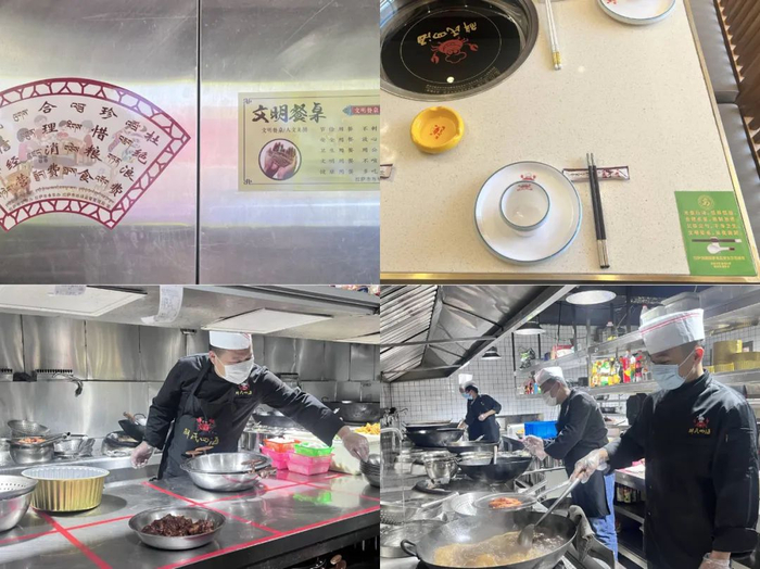 上榜理由:店内反食品浪费氛围浓厚,就餐大厅墙面及各餐桌均张贴有反食品浪费相关标识;后厨操作区域环境干净整洁、后厨人员工作衣帽口罩齐全。