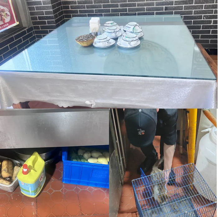 存在问题:未建立反餐饮浪费管理制度,部分餐桌上缺少反浪费宣传桌贴,商户反浪费意识不强。后厨饲养宠物,食品与洗涤制剂临近摆放且未离地。