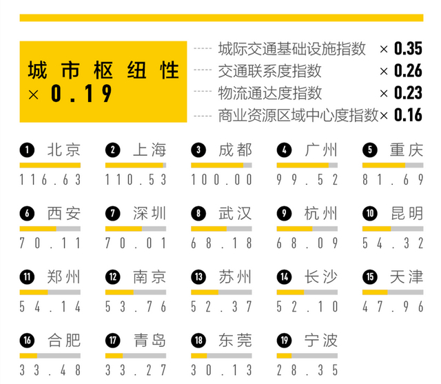 这是通过近200个品牌、17家互联网公司和数据机构的城市大数据,围绕商业资源集聚度、城市枢纽性、城市人活跃度、生活方式多样性和未来可塑性五大一级维度来评估337座地级及以上城市。