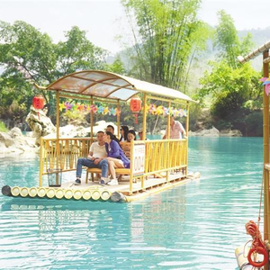 在景区撑竹筏的村民罗光建今年51岁,去年经过专业培训上岗后,成为一名家门口的“上班族”。他每天的工作是带着游客泛舟碧波之上,并为他们讲述景区的故事。