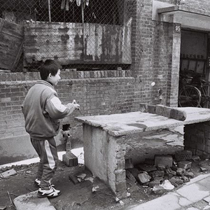 1985年11月凤城三村, 住一幢楼的同学,放学归来后在楼下简易的长石板中间放上几块砖,便开始“乒乓球比赛”。 种楠 摄