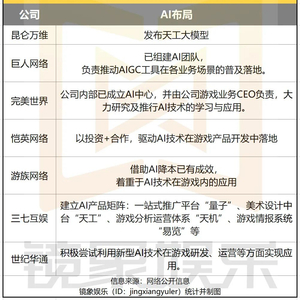 显然,无论是自主研发,还是寻求合作,AI+游戏已经成为大多游戏厂商的共同选择,将AI技术应用于游戏产品开发及产业链更多环节,也成了游戏厂商不得不参与的新一轮竞争。背后的指向在于,AI驱动下的游戏产业变革即将到来,对技术的把握将成为这轮淘汰赛的入场券。