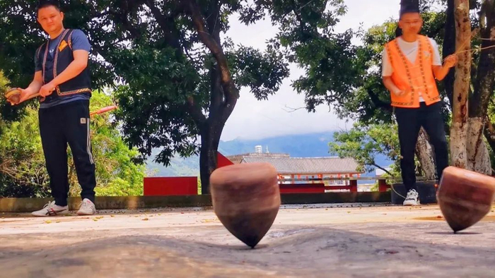 曾经,畲族青年脱下民族服饰,走出村落,到都市打拼,如今,很多像牟群一样的畲族青年回到村里创业,义务当起畲族宣传员,民族服饰成了引以为豪的标签。从服饰到运动,畲族特色文化近年来都得到了更好的传承与发扬。打陀螺就是畲族同胞喜爱的传统运动之一。在绿树成荫的广场,约上三五玩伴,打陀螺好手摆开阵仗,放飞陀螺。旋转,飞舞,竞速,在一场酣畅淋漓的友谊赛中度过美好时光。