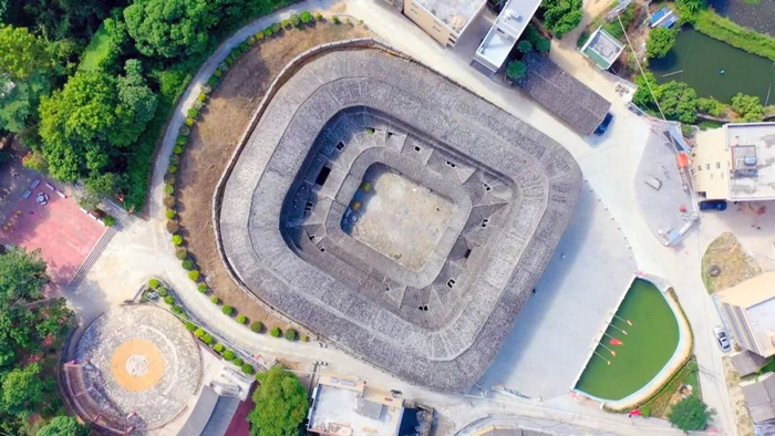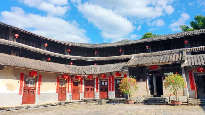 一片叶子,蕴含着大自然的馈赠,也凝聚着畲民的辛劳,而一座土楼,则更直观地记录了畲民生活的轨迹,反映了畲民生活的变迁。位于饶平县饶洋镇东南方的蓝屋畲族村是饶平县唯一一个少数民族村。村里建成两百多年的泰华楼是饶北山区的地标性文化建筑,是一座罕见的四方抹角形围楼,也是蓝屋畲族村民共同的精神家园。与绝大多数客家围楼一样,泰华楼呈封闭式,窗户、门板、前埕、池塘等的构造设计,无不体现出显著的防兽防盗防卫功能。历经岁月沧桑,泰华楼主体完好,风雅绰约,2012年,泰华楼晋升为省级文物保护单位。