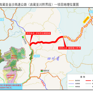 泸州经古蔺至金沙高速公路(四川段)全长约39公里,起于四川省泸州市古蔺镇东侧,接S80叙古高速,经龙山镇、观文镇、白泥乡、椒园乡,止于川黔界接贵州段的高速公路。