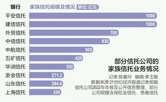 同时,全国超八成信托公司已启动家族信托业务,其中约10家信托公司在2022年年报中披露了家族信托业务规模,如平安信托的家族信托与保险金信托全年合计单数超9000单,累计规模超1000亿元,年增长率达80%。