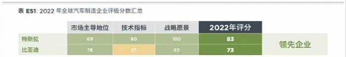 2023年5月31日,美国研究机构国际清洁交通委员会(ICCT)发布报告显示,针对全球20家大型汽车企业向纯电动汽车转型的评价结果表明,排名最靠前的是特斯拉和比亚迪,属于“领先企业”。