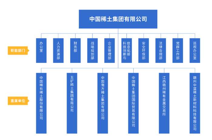 中国稀土是在中国铝业集团有限公司、中国五矿集团有限公司、赣州稀土集团有限公司所属稀土资产重组整合的基础上,引入中国钢研科技有限公司、有研科技集团有限公司,按照市场化原则组建的以中重稀土为主的大型稀土集团。