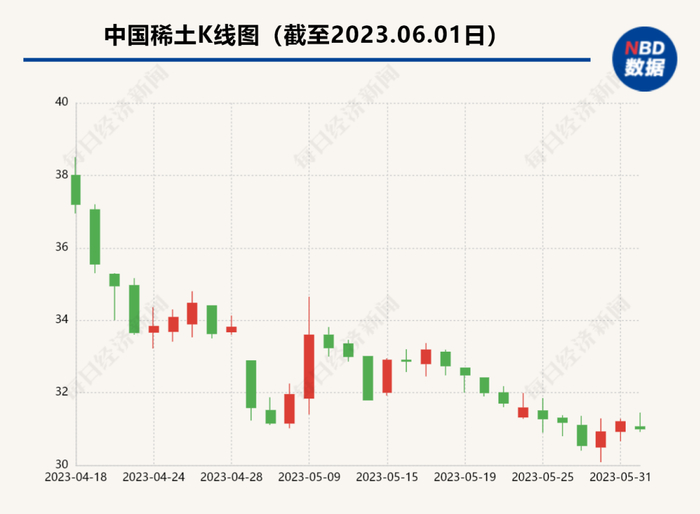 6月1日,中国稀土(000831)股价报收31元,总市值为304.1亿元。