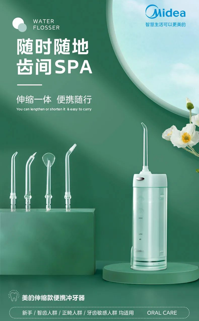 今天给大家推荐一款洗牙神器——【美的伸缩洁牙器】,在家就能冲洗牙缝,60秒冲出陈年老牙垢!