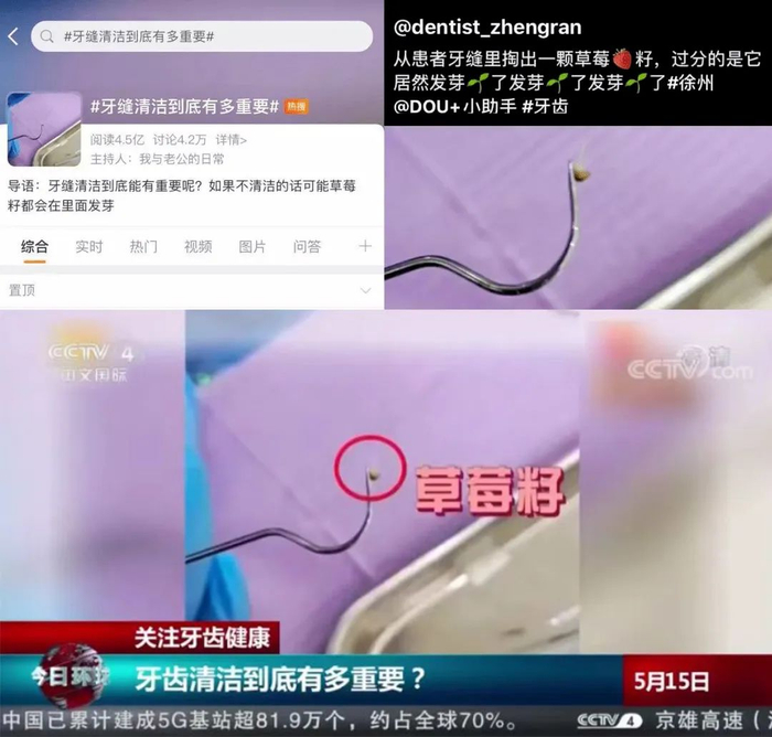 这不,有人去洗牙竟然洗出了发芽的草莓籽,还上了热搜……