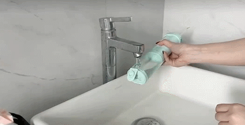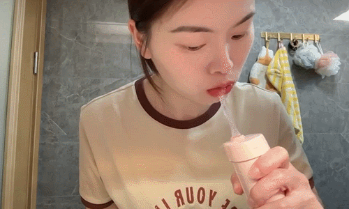 清洁的时候注意喷头要放在嘴里,身体微微前倾。