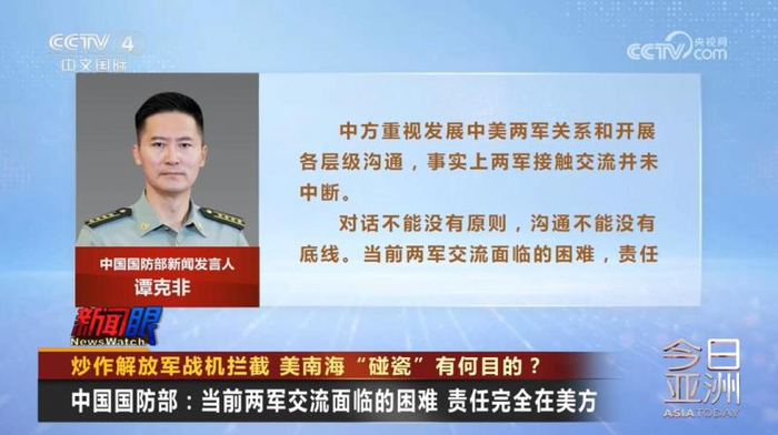 中国国防部:当前两军交流面临的困难 责任完全在美方
