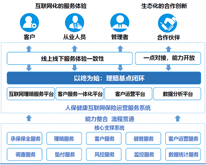 人保健康构建的覆盖业务全流程的互联网保险运营服务系统