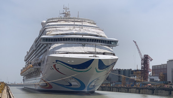目前“爱达·魔都”号的结构工作已经完成,正在开展辅料、地毯、瓷砖以及家具类的安装,这些工作完成后,邮轮建造将进入下一个阶段,为试航做准备。