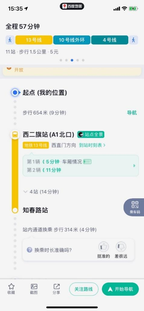 此外,百度地图实时地铁功能现已实现全国所有开通地铁运营城市的100%覆盖,用户可在规划出行路线的同时,便捷查询地铁的实时到站信息、到站时刻表以及车厢拥挤度,方便市民乘客更好地进行出行规划。