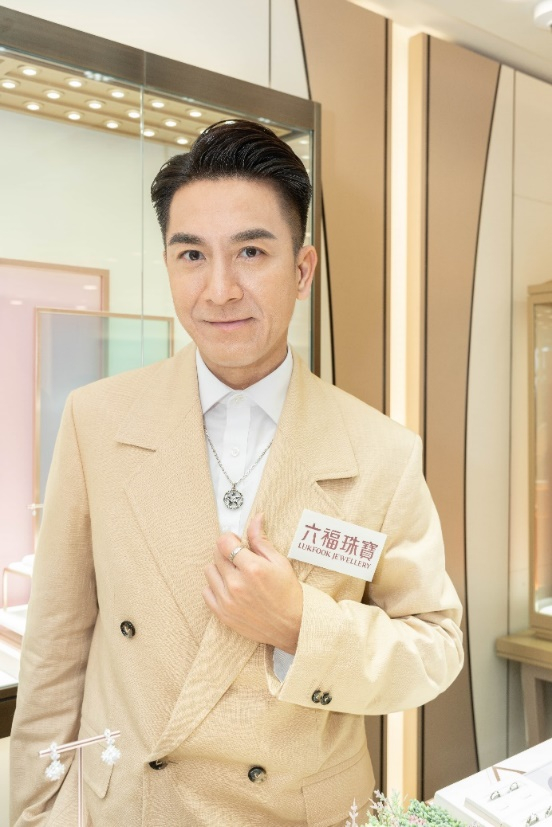 视帝马国明先生佩戴六福珠宝玄酷系列梦想启程铂金吊坠及婚嫁系列幸福定格铂金戒指,彰显男士魅力。