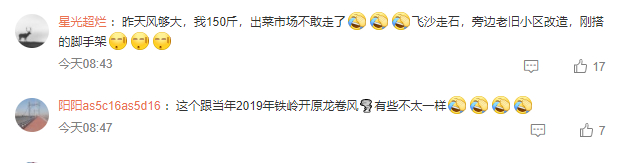 针对此事网友发表不同看法,有网友称“太可怕了,希望大家平安”;还有网友分享自己的经历“19年快上高二的时候亲眼目睹过龙卷风,希望这次老家能平安”“昨天风够大,我150斤出菜市场不敢走了,飞沙走石,旁边老旧小区改造,刚搭的脚手架”,也有网友称“人类面对大自然的威力是多么的微不足道”。