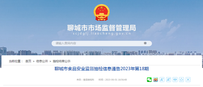 山东省聊城市市场监管局发布2023年第18期食品安全监督抽检信息