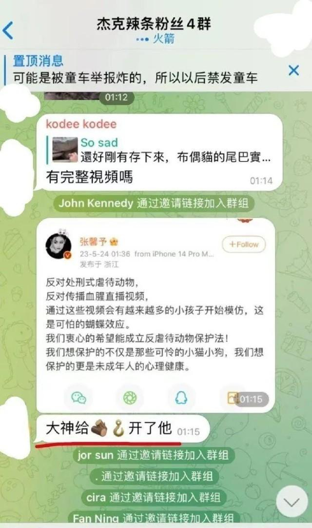 值得注意的是,网传聊天截图中,许多曝光明星信息的组群的名称是“‘杰克辣条’粉丝X群”。“杰克辣条”原名徐某辉,曾是一位在B站拥有40万粉丝的up主。在此前,“杰克辣条”被网友曝出组织虐猫,因此账号遭封禁,且被公安机关依法予以治安拘留。