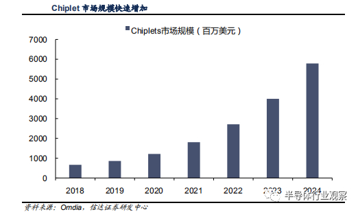 据Omdia报告,预计到2024年,Chiplet市场规模将达到58亿美元,2035年将超过570亿美元,市场规模将迎来快速增长。