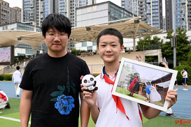 6月1日中午12点,程方来到学校操场上,身着校服的王炳程也出现在那里。王炳程告诉大家,自己2019年开始接触川剧变脸,至今获得了不少奖项。
