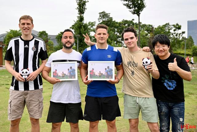 《成都无边界》中出现过几个国际友人,他们玩着一种叫Spike-ball(迷你排球)的新潮运动。6月1日下午,程方再次见到起了其中两名国际友人——来自英国的克里斯和来自西班牙的阿尔贝多。公园里,在国际友人的搭档下,程方也体验了一把Spike-ball的魅力。