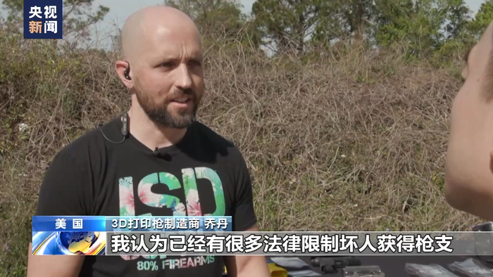 3D打印枪制造商 乔丹:我认为已经有很多法律限制坏人获得枪支,如果一个人打印枪支只是为了自己用,我觉得没有任何问题。